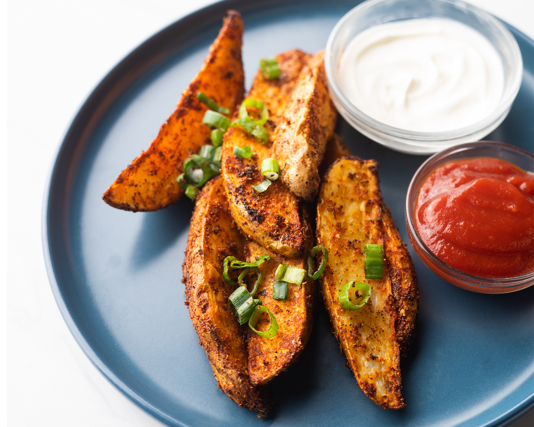 These Air Fryer Potato Wedges are full of flavor, a healthier alternative to french fries, and come out with the perfect crisp texture. They're the perfect side to your favorite mains and can be paired with a variety of dipping sauces.