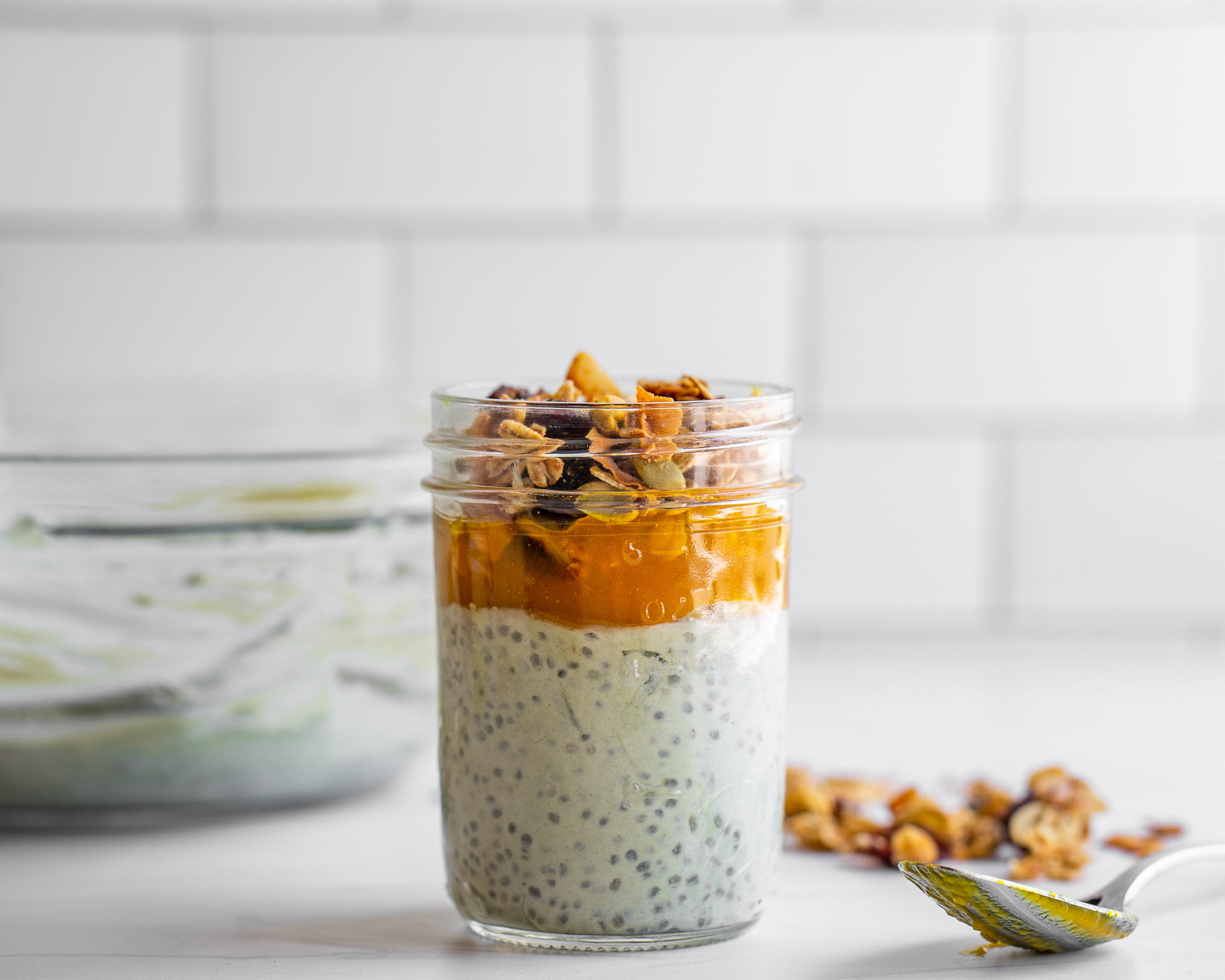There's a lot to love between matcha, coconut, and chia seeds in this parfait. Enjoy it for breakfast or as a midday pick me up. Don't forget to top it with your favorite jam and granola for a bit extra sweetness and crunch.