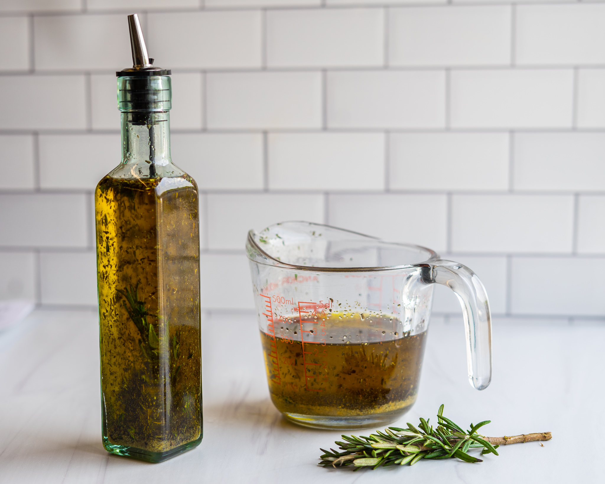 1. Add all ingredients to an oil dispenser, give it a good shake, and it on anything from bread and potatoes to meats and vegetables.