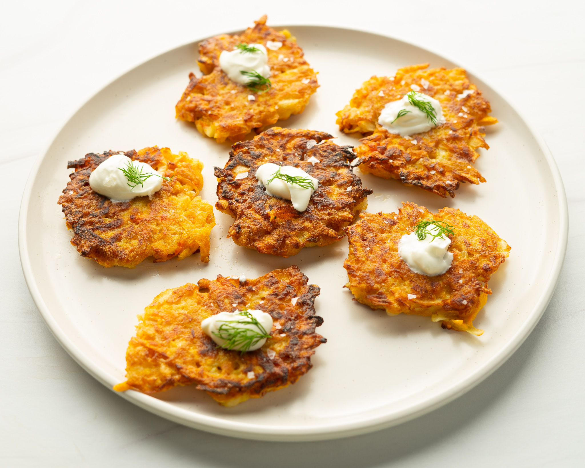 Happy Hanukkah to those who are celebrating! 🕎 We've got a latke recipe for you — by adding a mix of your favorite root vegetables to your more traditional latkes adds more earthy flavors, natural sweetness, and is the perfect way to add more nutrients to the dish. (P.S.- We had a great time taste testing these and think you'll find them delicious.)