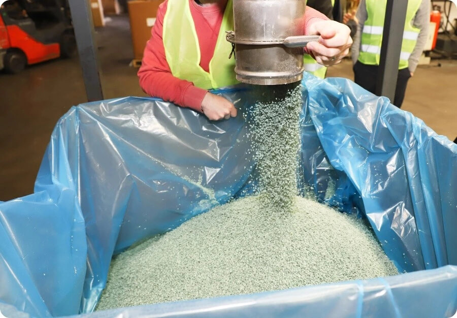 When it comes to your F&F containers, the material is shredded, melted, and reformatted into pellets, flakes, or powder format - check out this video to watch the process in action.