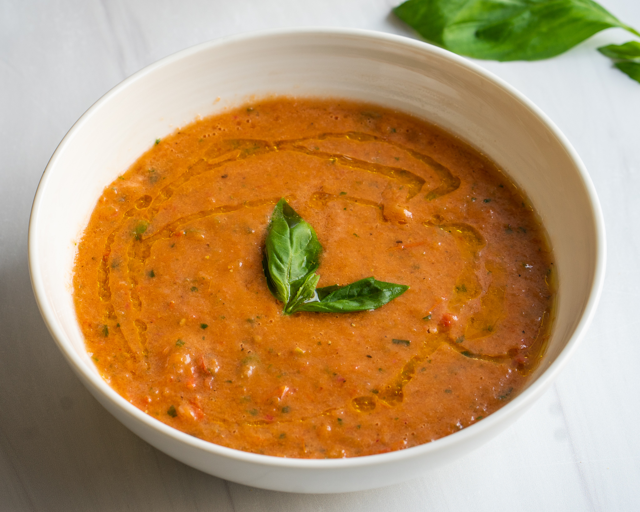 Made with garden fresh vegetables and olive oil creates a creamy cold soup that you've got to try. Cleaning up your backyard garden for the season change? This is the perfect recipe to use so they don't just go to waste.