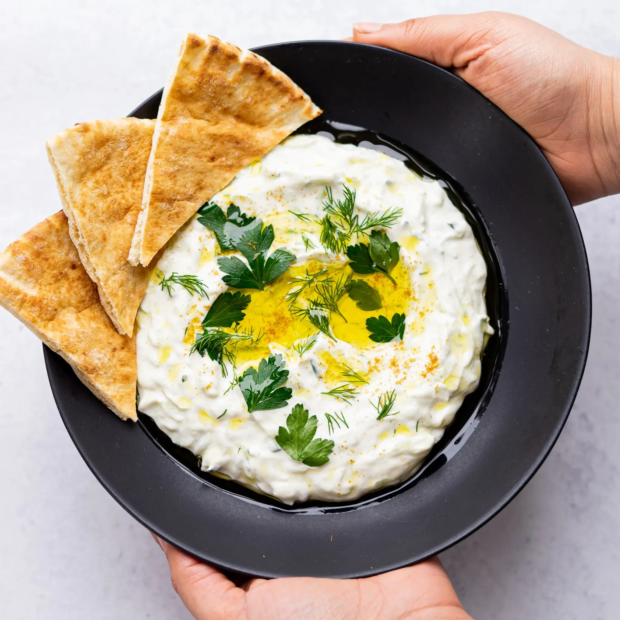 Tzatziki - a tangy, refreshing, and creamy sauce originating from Southeast Europe and The Middle East. It is protein packed and great for spreading on burgers, dolloping on soups, or dipping pita chips in!