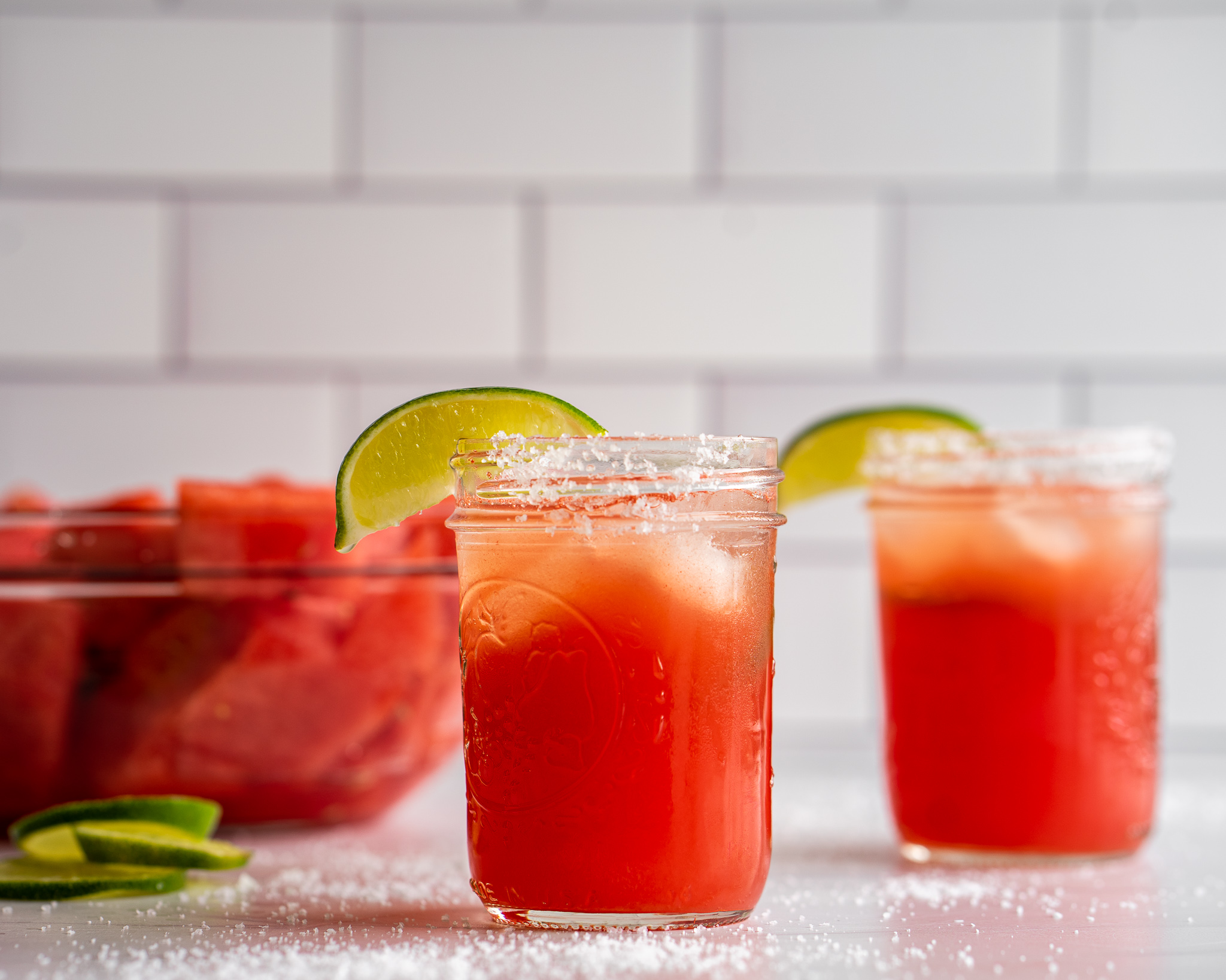Using fresh watermelon and lime juice is what really brings this recipe to the next level. It tastes great with a salted or sugared rim and ice! If you already have watermelon juice, skip the blender altogether and use 4 cups of watermelon juice and stir with all ingredients.